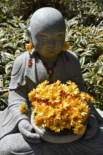 鎌倉・明月院にて(撮影日は3/31)。お寺の方が飾られたのでしょう。お地蔵様に花のイヤリングなんて茶目っ気たっぷり!笑