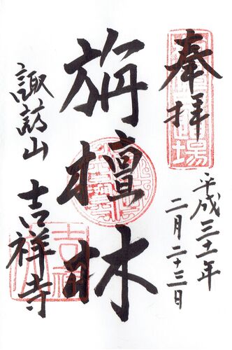 東京・駒込にある諏訪山吉祥寺の御朱印。 「旃檀林(せんだんりん)」と境内社の「茗荷稲荷大権現」の御朱印。 旃檀林(せんだんりん)とは、1592年に吉祥寺内に設けられた学寮のことだそう。駒澤大学の前身のひとつで、仏教の研究と漢学の振興を目的として…