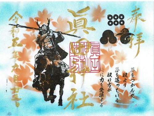 真田氏の居城であった上田城跡にある真田神社。秋分の日にいただいたのが真田幸村(信繁)の見開き御朱印!これは…!!!戦国好きには堪らない!